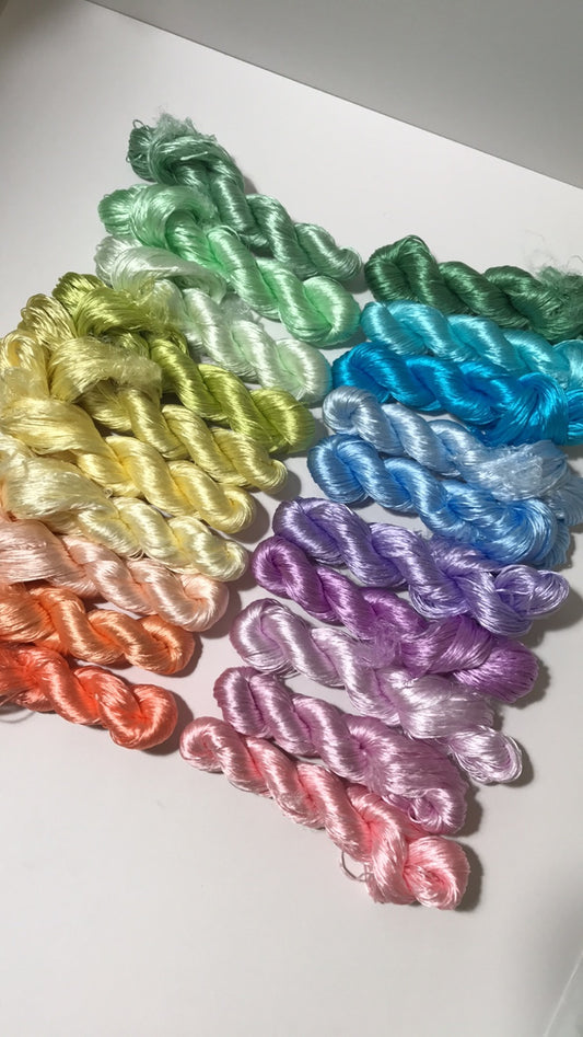 10g Suzhou Embroidery Thick Filament Slightly Twisted Mulberry Silk Thread(七彩丹霞 10g*9)
