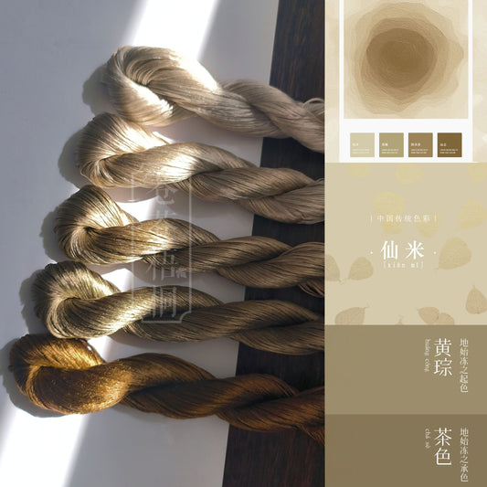 10g Suzhou Embroidery Thick Filament Slightly Twisted Mulberry Silk Thread(仙米茶色 10g*5)