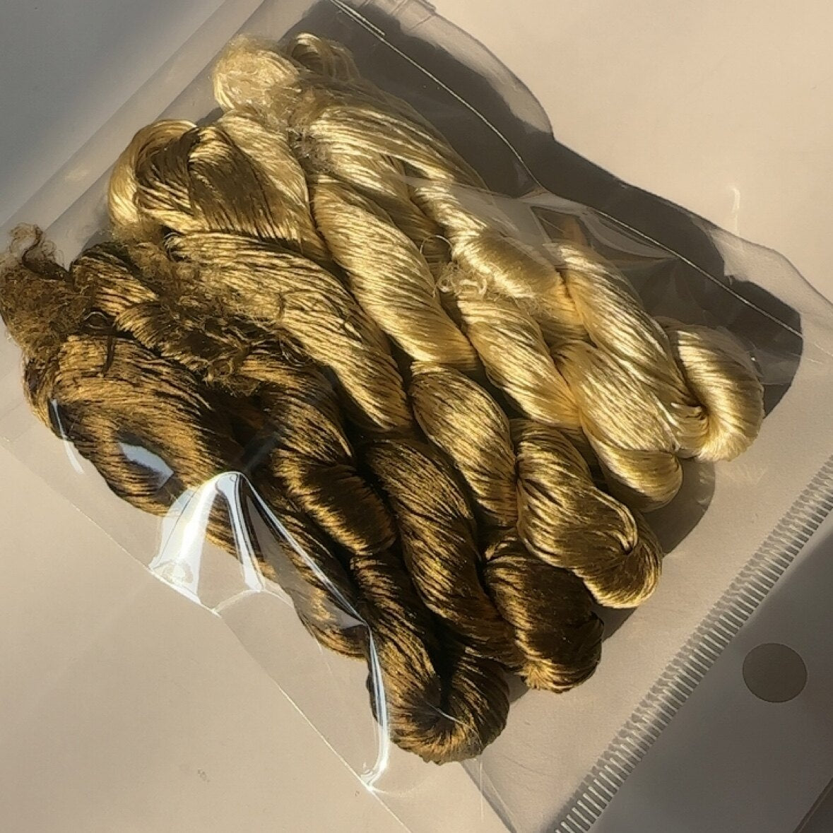 The thread in the image below is 100m Suzhou Embroidery Untwisted Mulberry Silk Thread. Please note that the product specification has been adjusted to 80m, and the price for a small bundle has also been reduced from 2.5 USD to 2 USD.