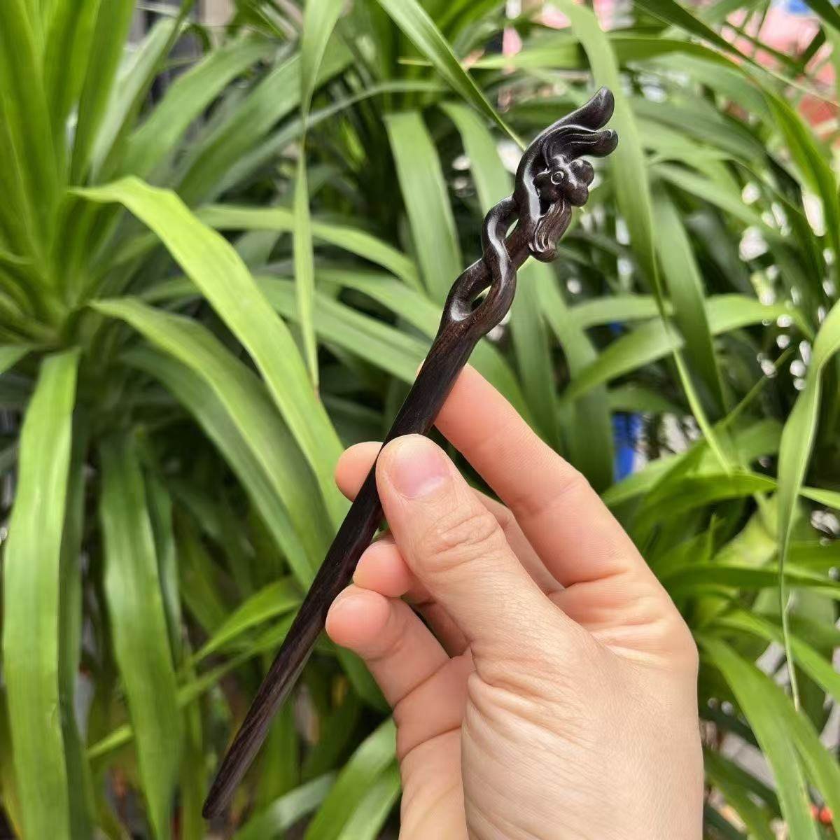 This set of four hair sticks is crafted from premium natural woods in their original authentic colors: rosewood (deep reddish-brown), green sandalwood (subtle greenish tones), golden phoebe (warm golden hues), and African blackwood (rich dark shades). No dyes or coatings are applied — the varied tones and natural grain patterns come directly from the wood, with finely sanded smooth surfaces that glide effortlessly through hair without pulling or damage.