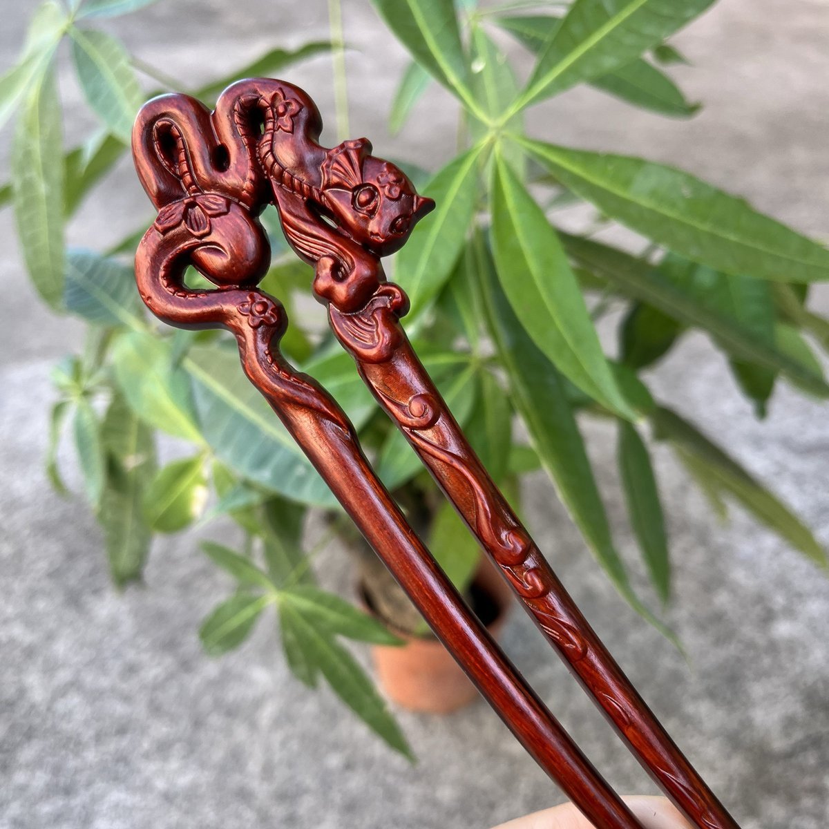 Natural Wooden Snake Hair Stick Set - 17cm U Shape (美女蛇)