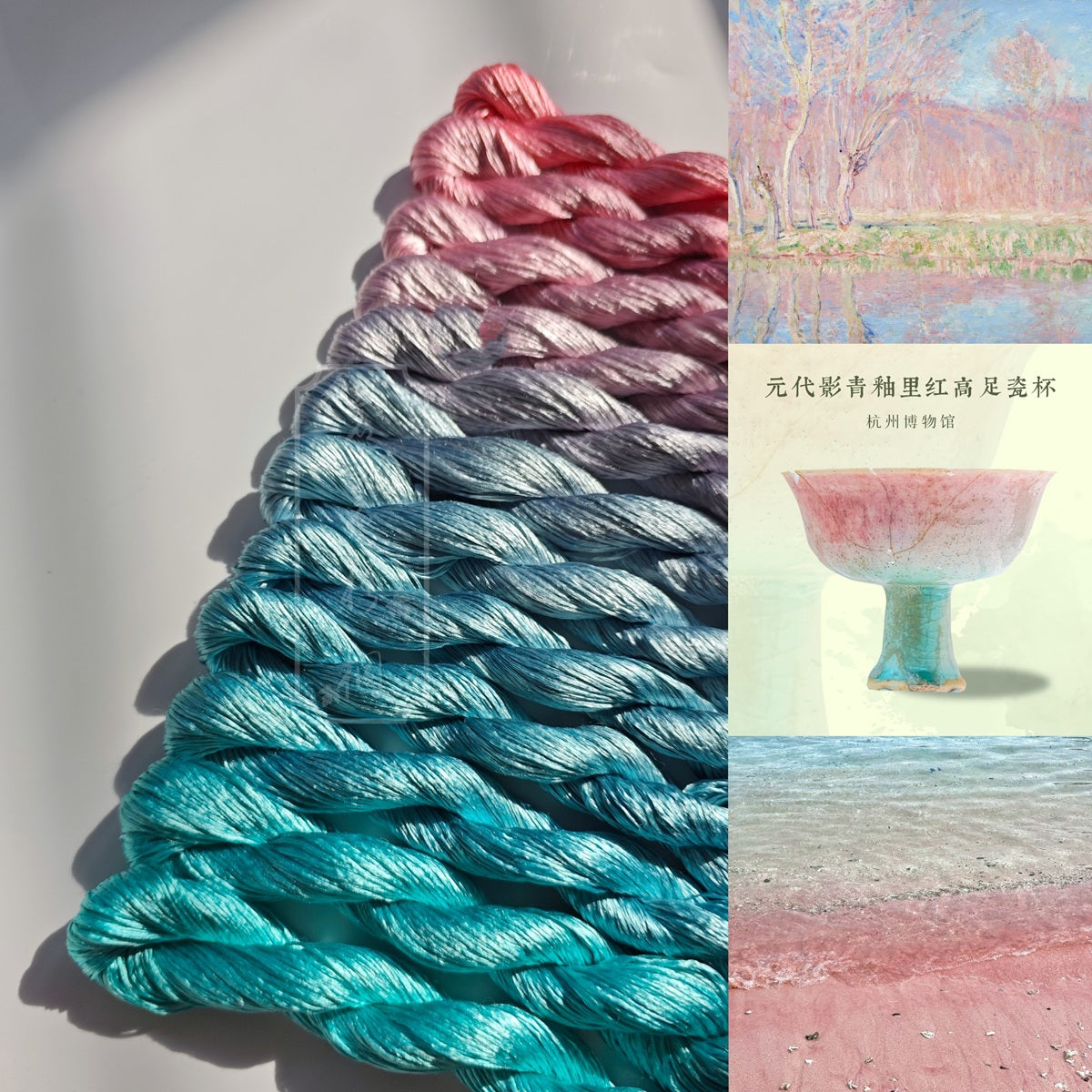10g*12 Suzhou Embroidery Thick Filament Slightly Twisted Mulberry Silk Thread(粉黛青影)