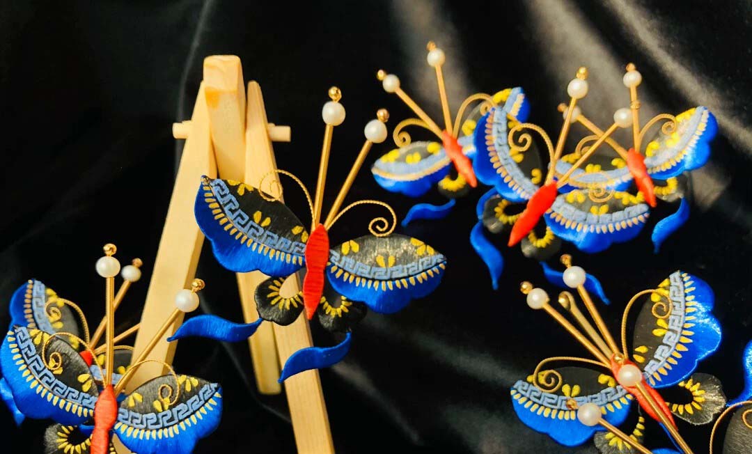 One butterfly style is a U hairpin, the two butterflies style is a pair of ear spoon hairpins, replicas of cultural relics from the Forbidden City.