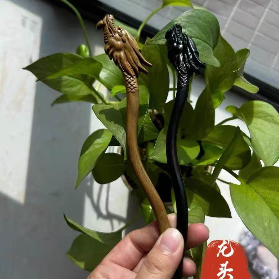 Natural Wooden Hair Stick Set - 20cm Dragon Head Hairpin (龙头)