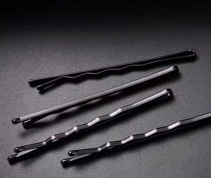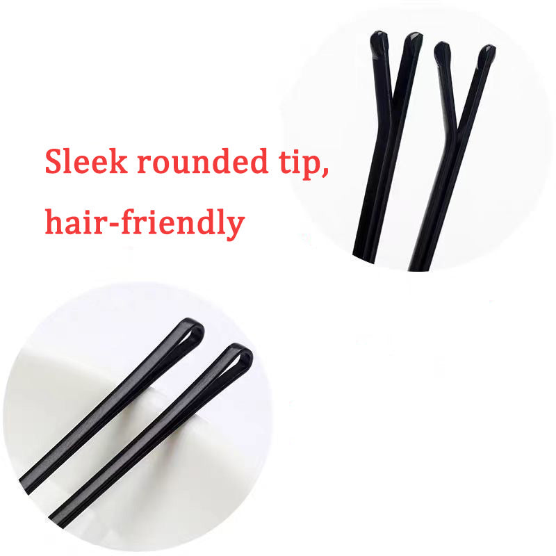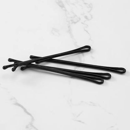 High-quality black bobby pins designed for securing updos, taming flyaways, and everyday hairstyling. Featuring extra thickness, reinforced grip, and high elasticity for superior durability and minimal bending. Made with premium enamel coating to resist chipping, ensuring long-lasting color and hair protection.